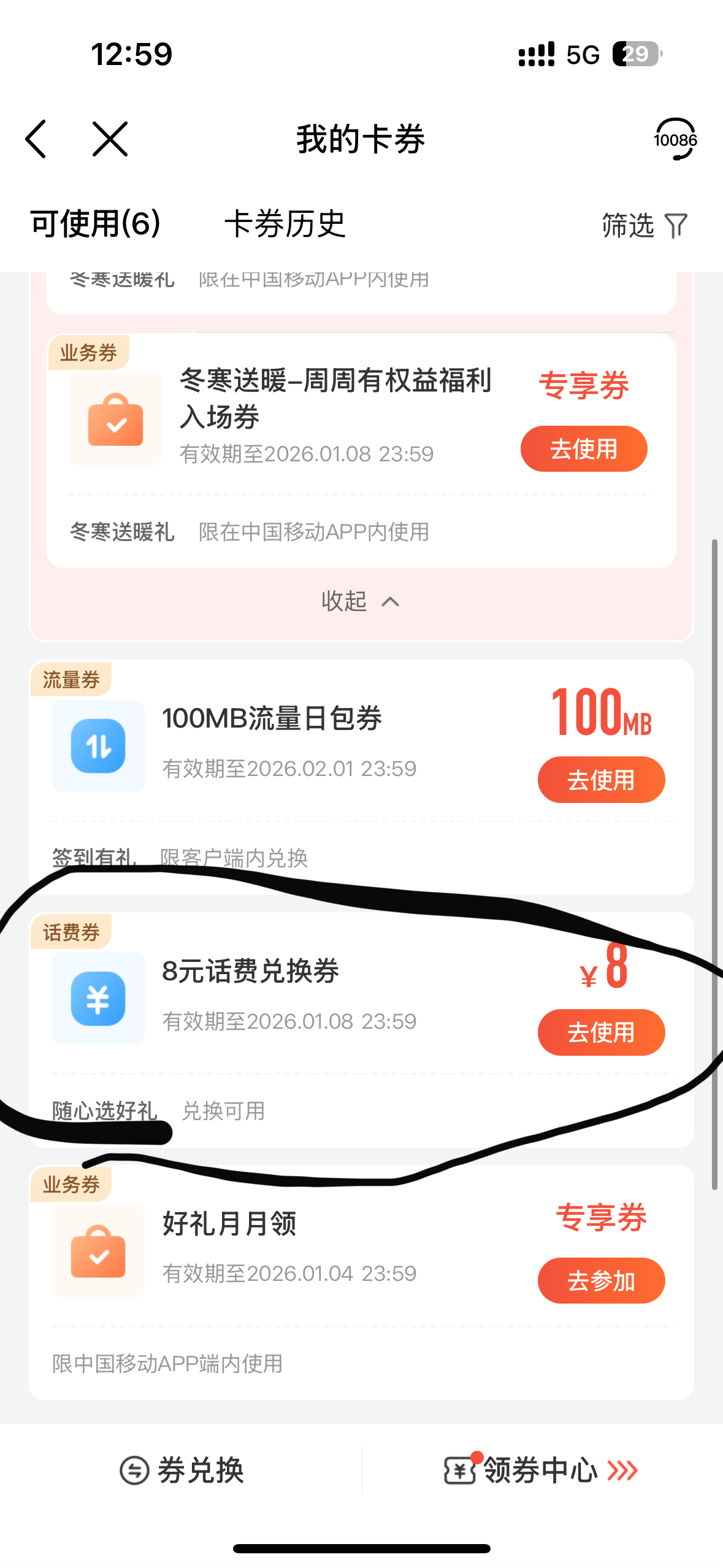 领取后需要到中国移动app中进行兑换。