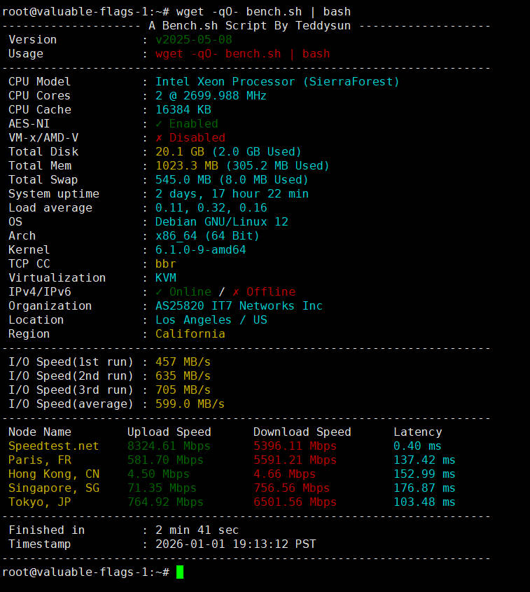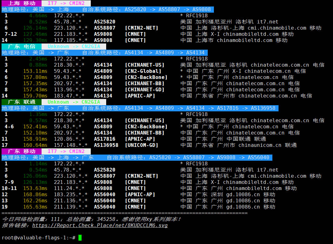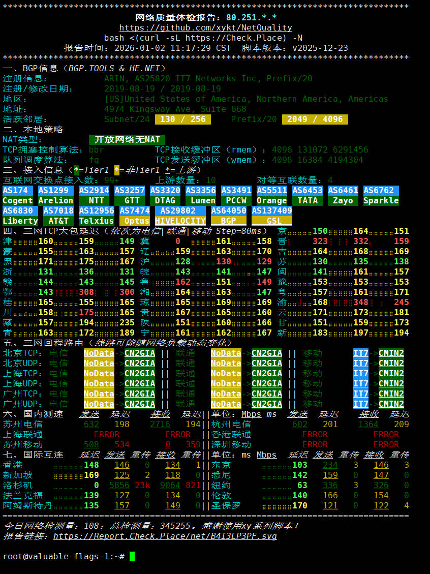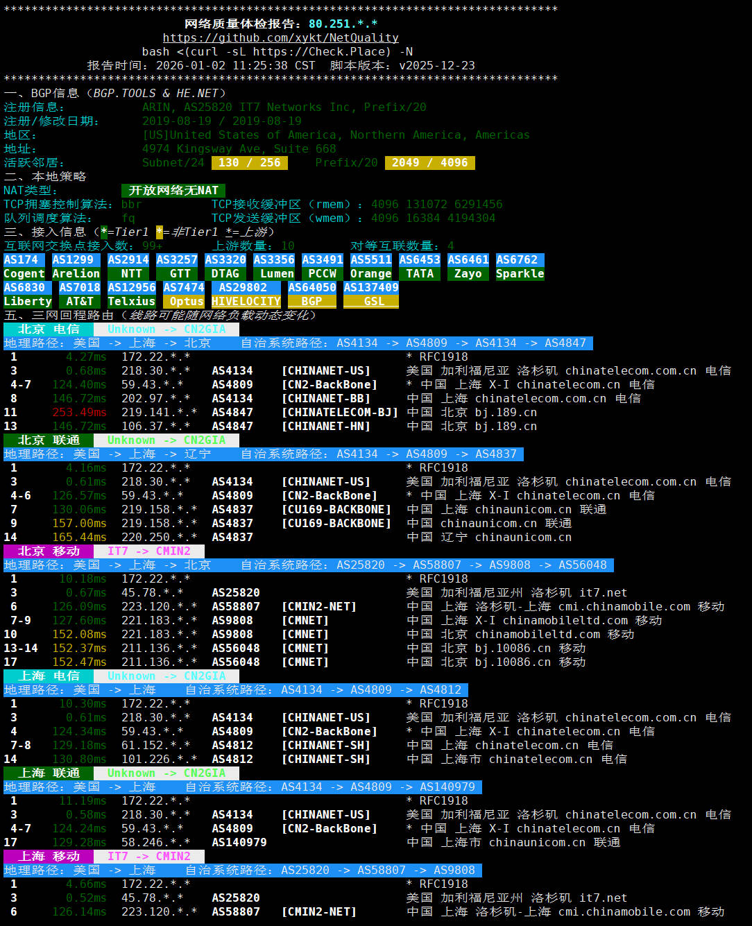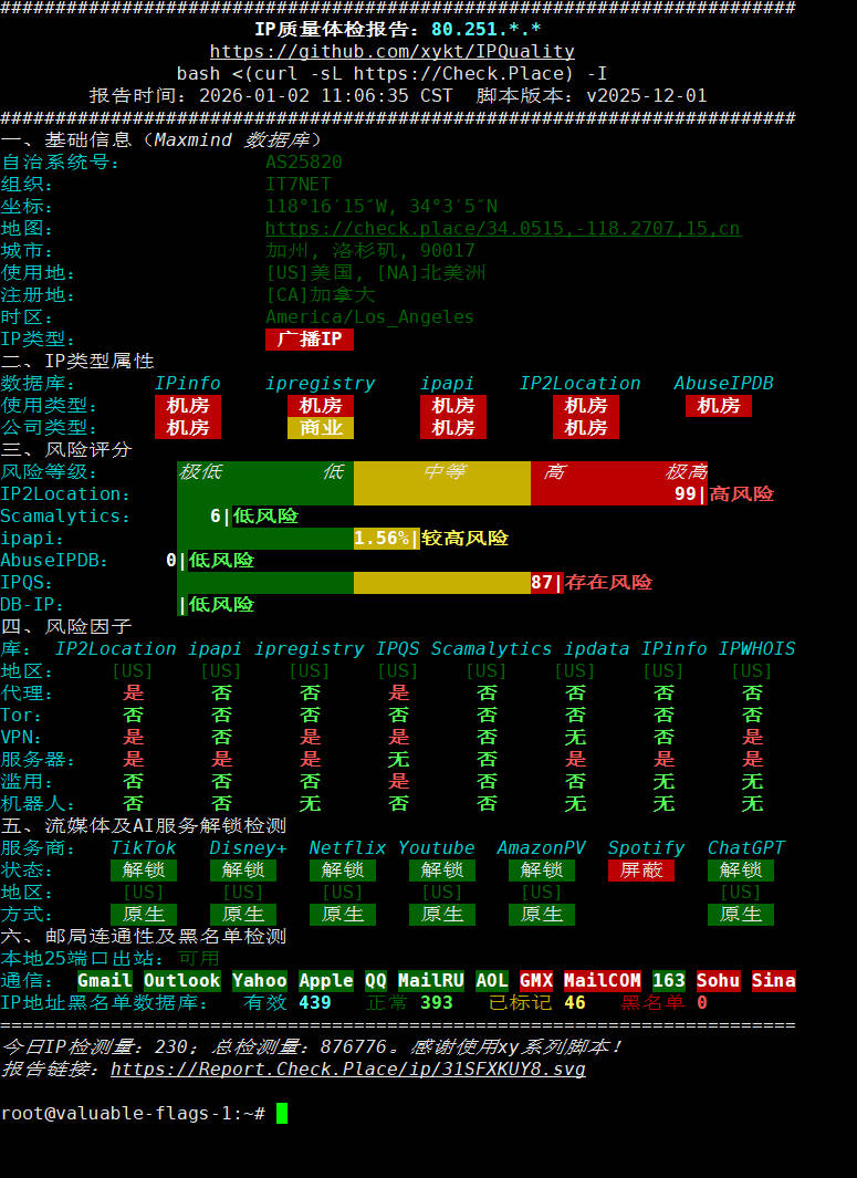 所使用脚本:IP质量体检脚本 bash <(curl -sL IP.Check.Place)