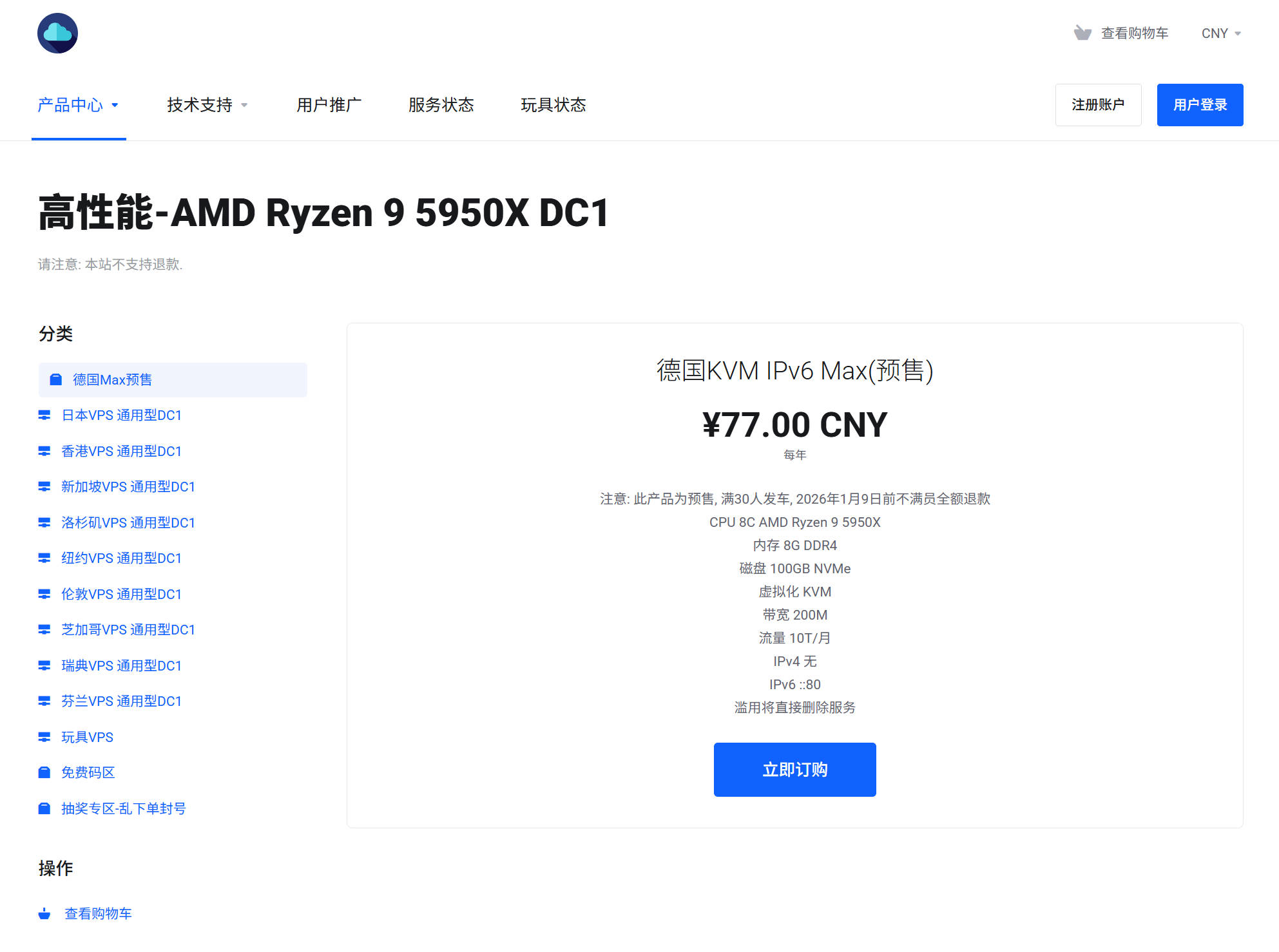 无聊云新上了德国KVM IPv6 Max预售机器。