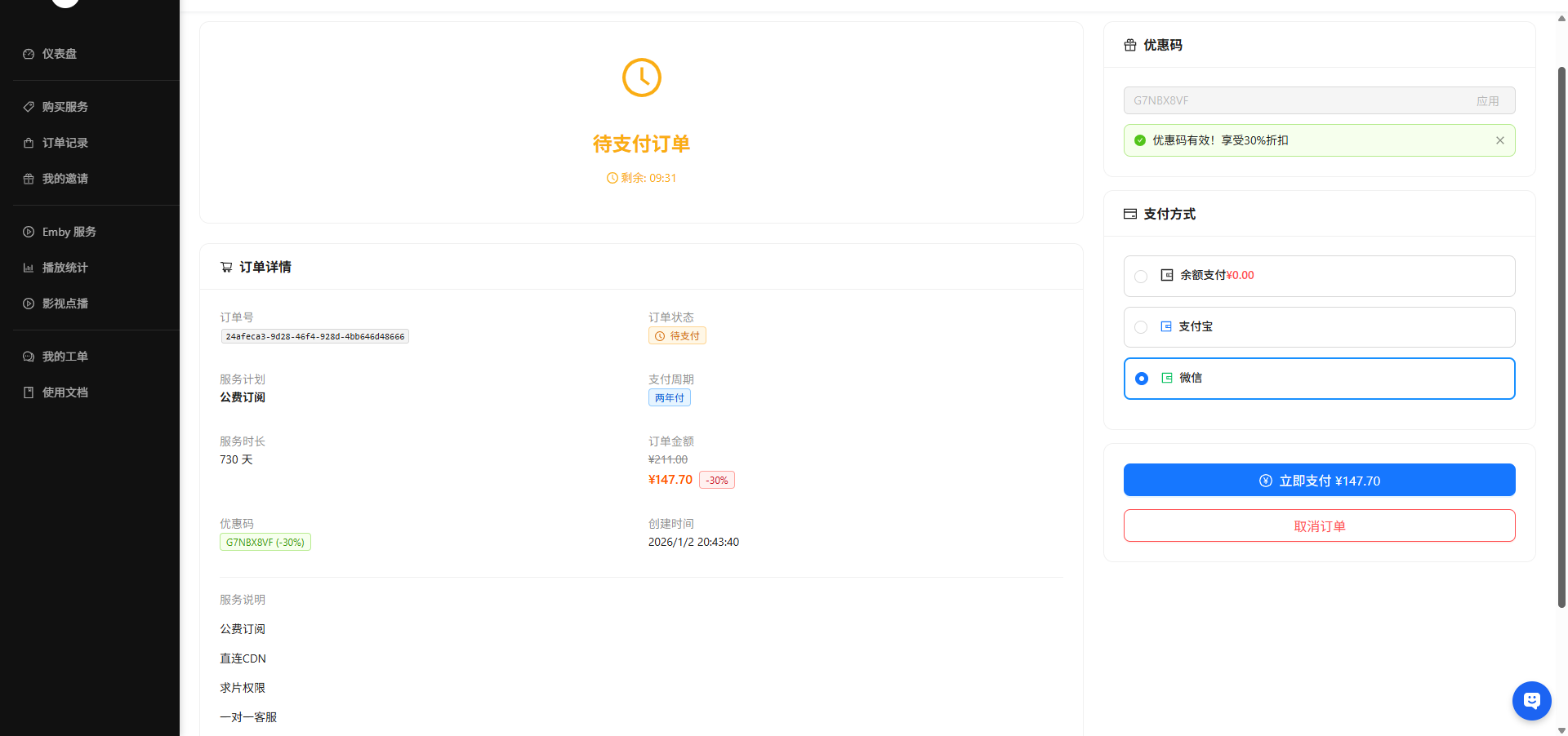 本次活动的折扣支持叠加使用!如果您购买两年卡并使用 7 折优惠码,最终价格计算如下:
