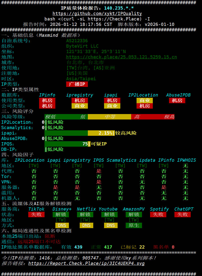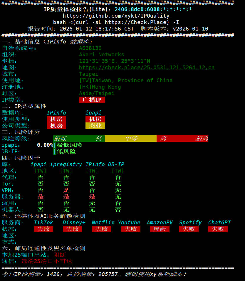 IPv4/IPv6 : ✔ Online / ✔ Online